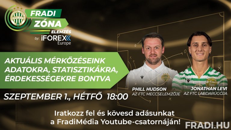A DVSC elleni 3-0-s idegenbeli győzelem után szeptember 1-jén, hétfőn 18.00-tól Phil Hudson és Jonathan Levi értékeli a találkozót a Fradi Zóna Elemzés by iFOREX Europe következő adásában.