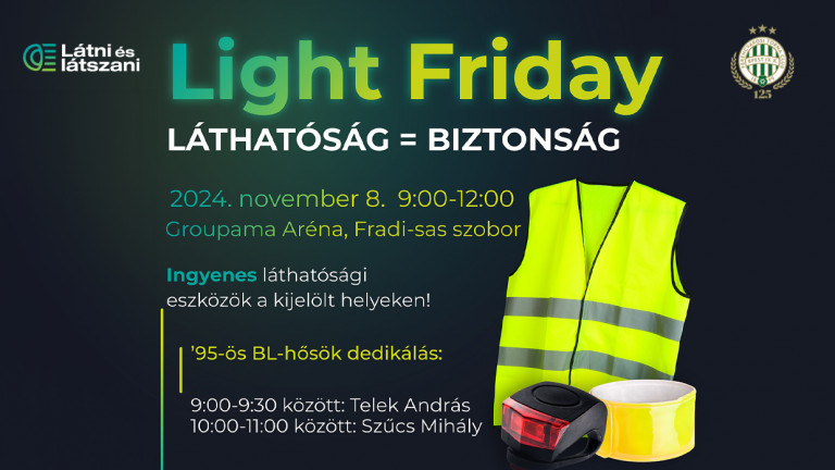 Fontos társadalmi ügy mellé áll a Ferencvárosi Torna Club. Az Országos Rendőr-főkapitányság Balesetmegelőzési Bizottsága idén is meghirdette Light Friday elnevezésű kampányát, amely arról szól, hogy mindenki, beleértve az autósok mellett a kerékpárosokat, a motorosokat és a gyalogosokat is, jól látható legyen a közúton.