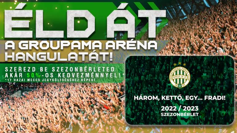 Vegye meg most új bérletét vagy újítsa meg az eddigit a 2022/2023-as szezonra! Csatlakozzon bérleteseink táborába és biztosítsa be helyét mielőbb az FTC hazai bajnoki és kupamérkőzéseire!