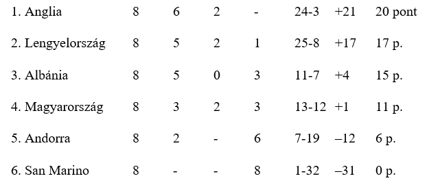 Az I-csoport állása: