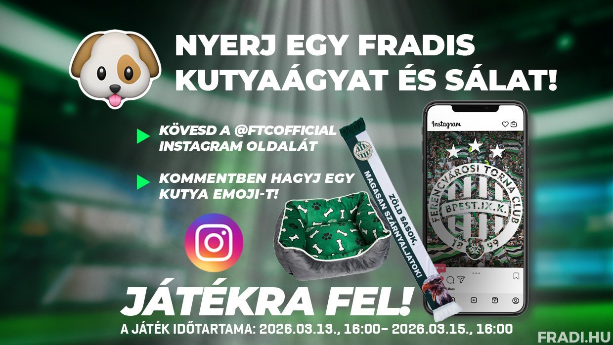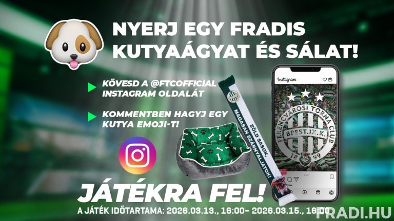 A „Nyerj Fradi kutyaágyat és egy sálat” nyereményjáték szabályzatát IDE kattintva, míg az adatkezelési tájékoztatót IDE kattintva lehet elolvasni.