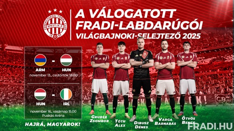 A magyar férfi labdarúgó-válogatott szövetségi kapitánya, Marco Rossi november 4-én, kedden Telkiben keretet hirdetett a nemzeti csapat novemberi, sorsdöntő világbajnoki selejtezőire. Ennek értelmében öt FTC-játékos, Dibusz Dénes, Varga Barnabás, Tóth Alex, Ötvös Bence és Gruber Zsombor készülhet előbb az Örményország elleni idegenbeli, majd pedig az Írország elleni hazai találkozóra.