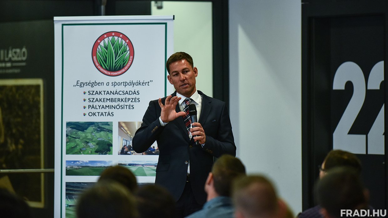 - Az idei konferencia fő témája a sportpálya-fenntartás jelene és jövője volt – árulta el Laczkó Zoltán, a Magyar Sportpálya-fenntartók Egyesületének szakmai alelnöke, aki egyben a Groupama Aréna gyepének karbantartásáért is felel. - Az esemény nagyon jó volt, a szponzorok is maximálisan elégedettek voltak, mindenki jól érezte magát. A résztvevők két neves külföldi vendégtől is előadást hallhattak.