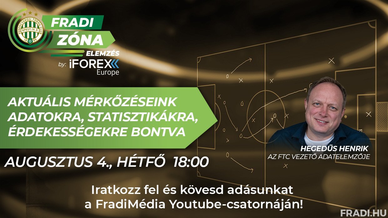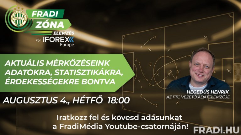 A nagysikerű meccsnapi értékelő műsor után április 7-én vadonatúj, exkluzív műsorral bővült vodcastunk: a Fradi Zóna Elemzés by iFOREX Europe adásában az aktuális mérkőzésünket követő hétfőn Jáky Gergely műsorvezető az FTC vezető adatelemzőjével, Hegedűs Henrikkel beszélgetett, aki a legutóbbi találkozóból készített friss statisztikákkal, kimutatásokkal, érdekességekkel készült.
