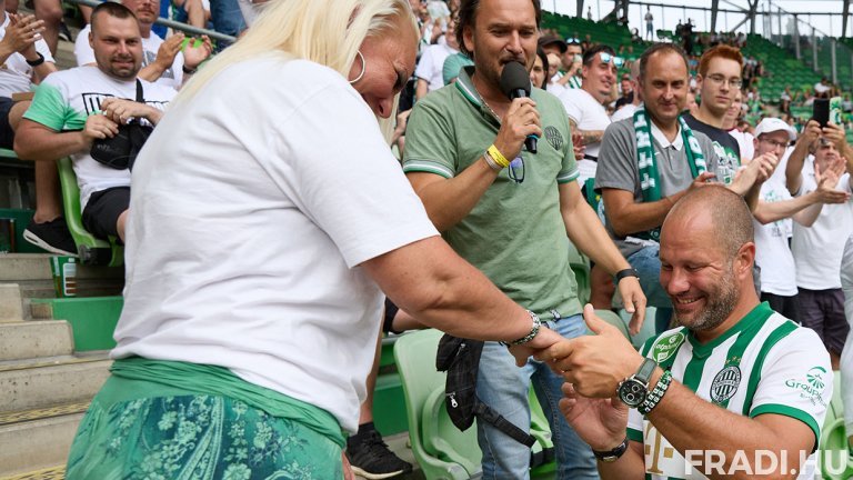 Nemcsak a világon, hanem itthon is egyre népszerűbbé válik a férfi szurkolók körében, hogy egy sporteseményen, és általában a lelátón kérik meg életük párjának kezét. A gyerekkora óta óriásai Fradi-drukker Tamás is így gondolta, amikor nemrég, az egyik hazai mérkőzésen kedvesének, Tímeának feltette a nagy kérdést. Természetesen a boldog pár örömmel mesélt a nem mindennapi pillanatról a FradiMédiának.