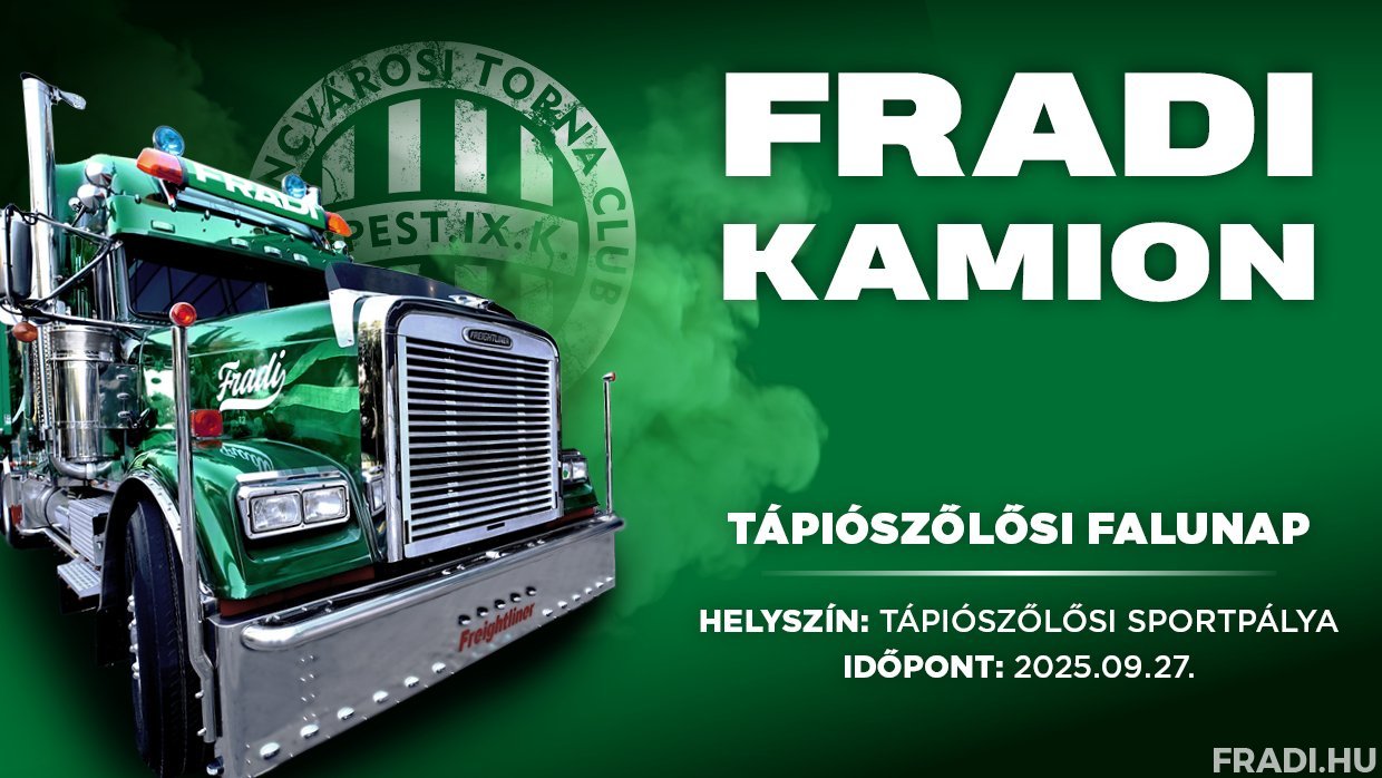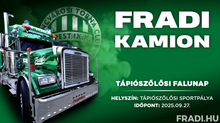 Szeptember 27-én, szombaton Tápiószőlősön, a Sport út 2. szám alatt található Sportpályán lesz megtekinthető klubunk országjáró járműve, a Fradi Kamion. 9:00-tól egészen 17:00-ig várjuk az érdeklődőket, illetve szurkolói kártya regisztrációra is lehetőséget biztosítunk.