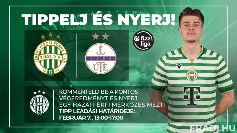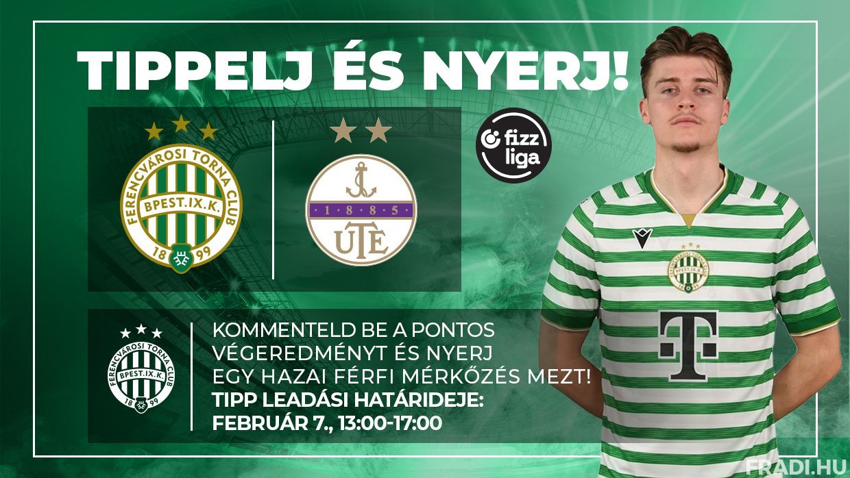 Itt az újabb remek alkalom, hogy szurkolóink különleges Fradi-ajándékot nyerjenek! Figyelje a Fradi Facebook-oldalát, ahová az Újpest FC elleni Fizz Liga-mérkőzés előtt négy órával kitesszük a "Tippelj és nyerj!” posztunkat, ez alá várjuk a pontos tippeket arról, hogy mi lesz a találkozó pontos végeredménye.