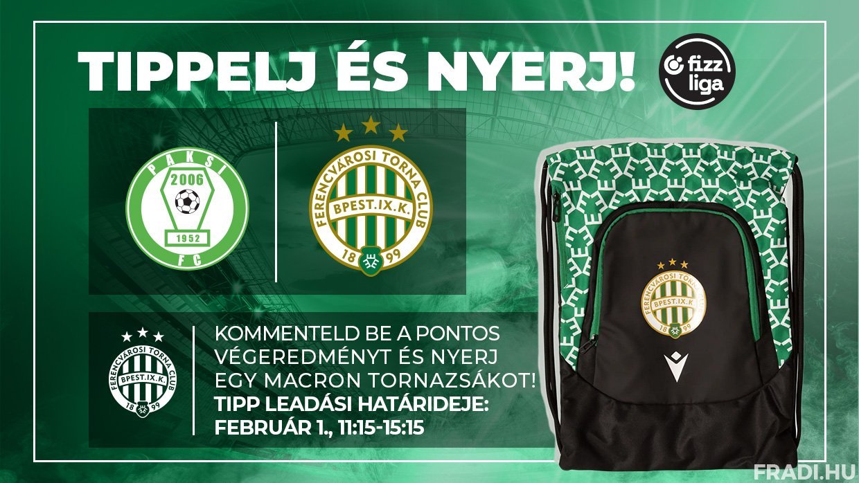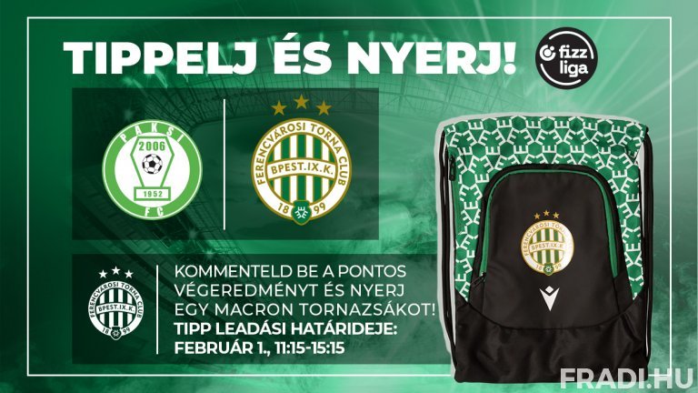 Itt az újabb remek alkalom, hogy szurkolóink különleges Fradi-ajándékot nyerjenek! Figyelje a Fradi Facebook-oldalát, ahová a Paks elleni Fizz Liga-mérkőzés előtt négy órával kitesszük a "Tippelj és nyerj!” posztunkat, ez alá várjuk a pontos tippeket arról, hogy mi lesz a találkozó pontos végeredménye.