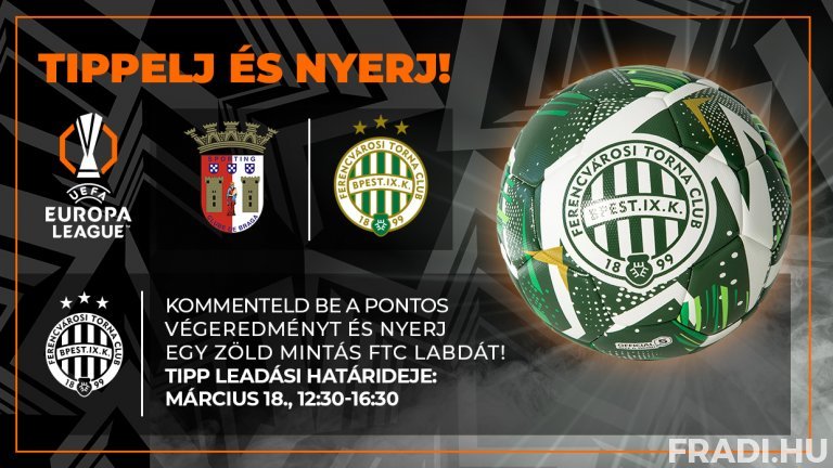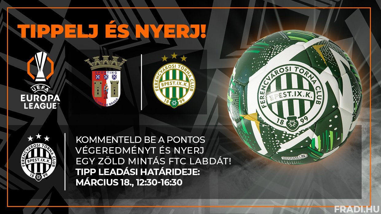 Itt az újabb remek alkalom, hogy szurkolóink különleges Fradi-ajándékot nyerjenek! Figyelje a Fradi Facebook-oldalát, ahová az SC Braga elleni UEFA Európa Liga nyolcaddöntő-mérkőzés előtt négy órával kitesszük a "Tippelj és nyerj!” posztunkat, ez alá várjuk a pontos tippeket arról, hogy mi lesz a találkozó pontos végeredménye.