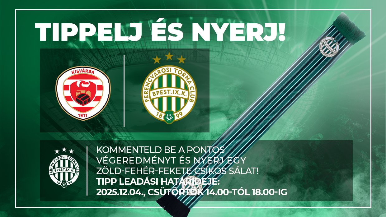 Játékunk során a helyes végeredményt kommentben megtippelő szurkolóink között egy zöld-fehér-fekete csíkos Ferencváros sálat sorsolunk ki.