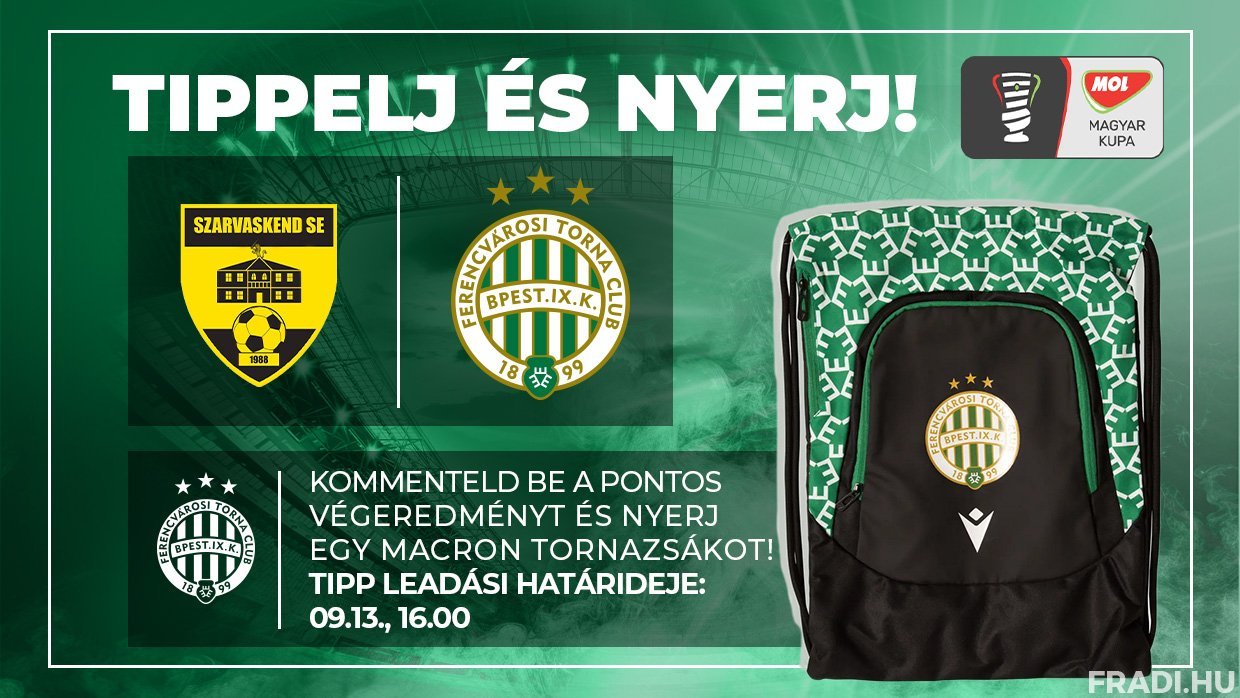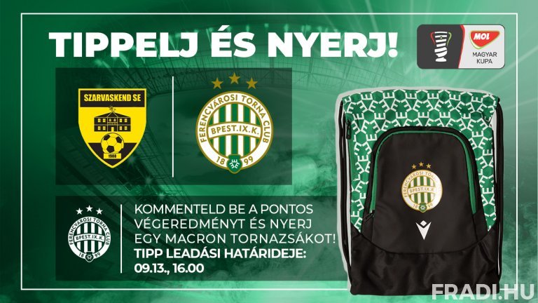 Itt az újabb remek alkalom, hogy szurkolóink különleges Fradi-ajándékot nyerjenek! Figyelje a Fradi Facebook-oldalát, ahová a Szarvaskend elleni MOL Magyar Kupa-találkozónk előtt négy órával kitesszük a “Tippelj és nyerj!” posztunkat, ez alá várjuk a pontos tippeket arról, hogy mi lesz a találkozó pontos végeredménye.