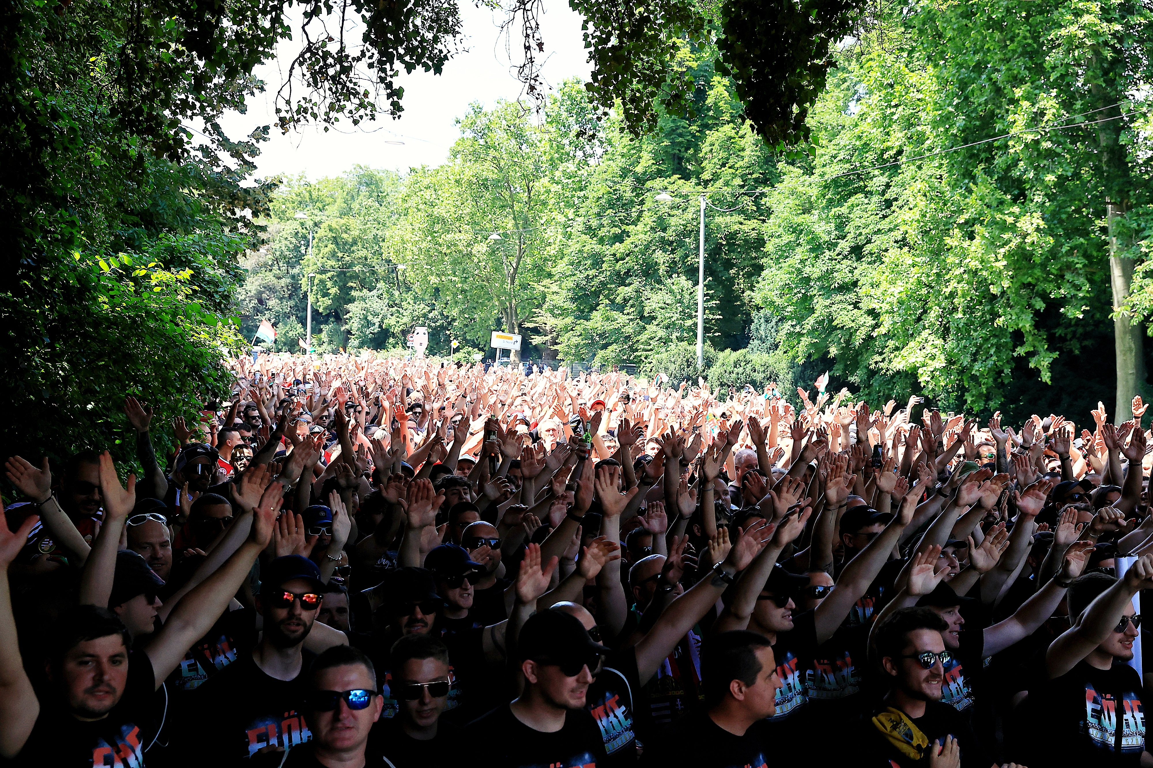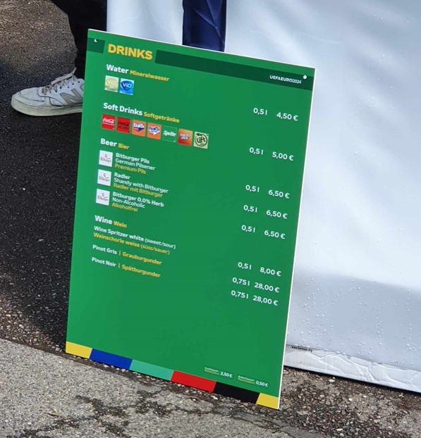 Vitának, balhénak nyoma sem volt, a német emberek segítőkészek voltak, bár interjút kevesen akartak adni. Mindenki bizakodó volt, fogyott a sör, kisütött a nap. Délre ismét megcéloztuk a gyülekező helyét, parkolni is sikerült. Egy hatalmas parkban volt a kijelölt helyszín, egy nagyobbacska tó partján. A szervezők ételt és italt kínáló sátrakkal várták a magyar szurkolókat, kupont kellett vásárolni pénzért, úgy lehetett fizetni. Alább az árak. Akkor buli most nem volt Kölnben, Náksi Attila sem állt a DJ-pultban, sőt a vonulás kezdése is erősen döcögött, végül sikerült összeállni egy alagútban a tábornak, s információink szerint mintegy 8000 ezer drukker tudott elmasírozni a stuttgarti Mercedes-Benz Arénáig, ahol korábban volt focistáink közül Lisztes Krisztián, Szabics Imre és Hajnal Tamás is kergette a labdát.