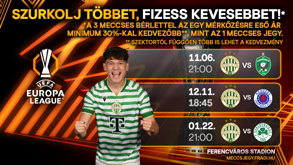 Biztosítsa be helyét főtáblás meccseinkre, szurkoljunk együtt hazai pályán a Fradinak az UEFA Európa Ligában is!