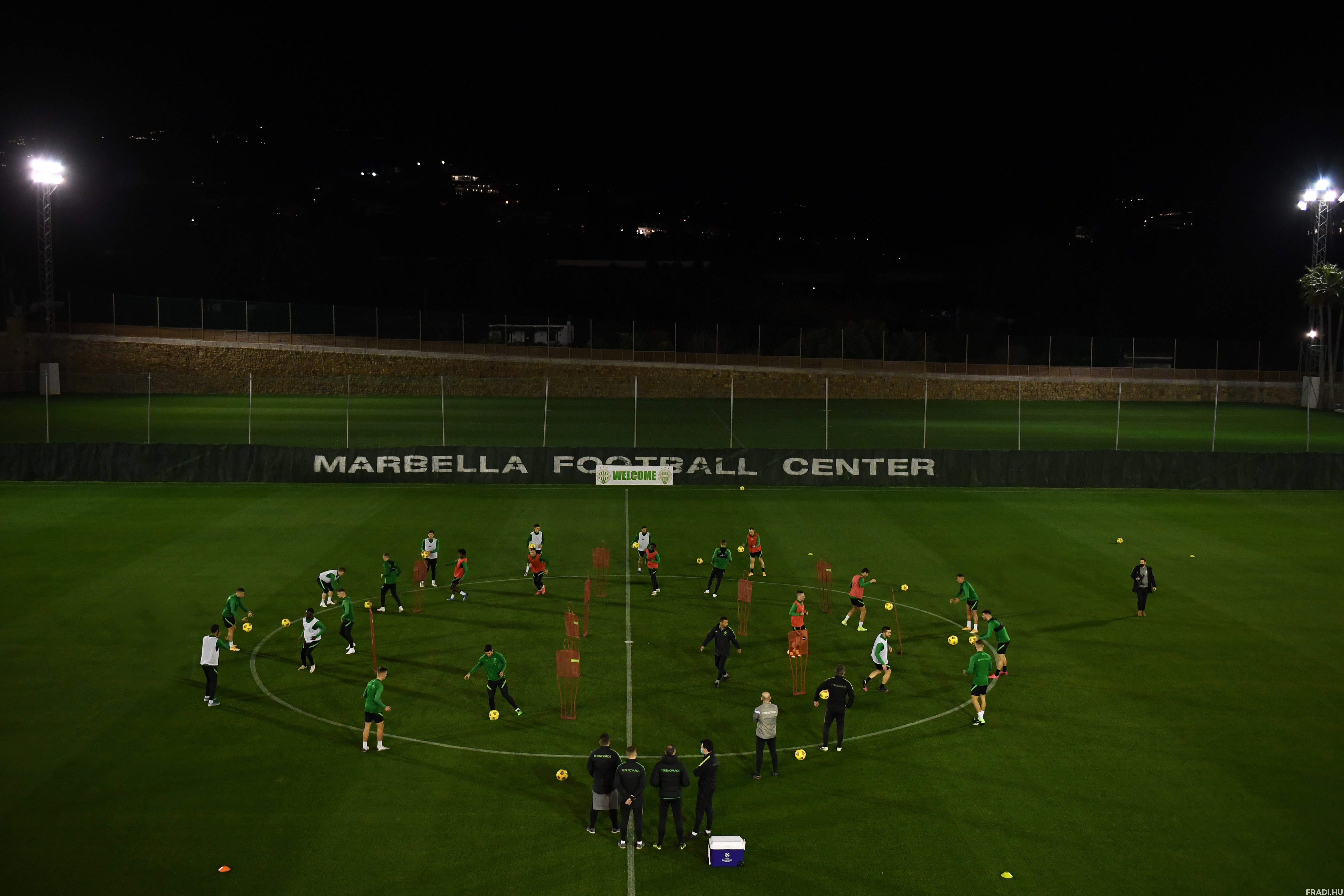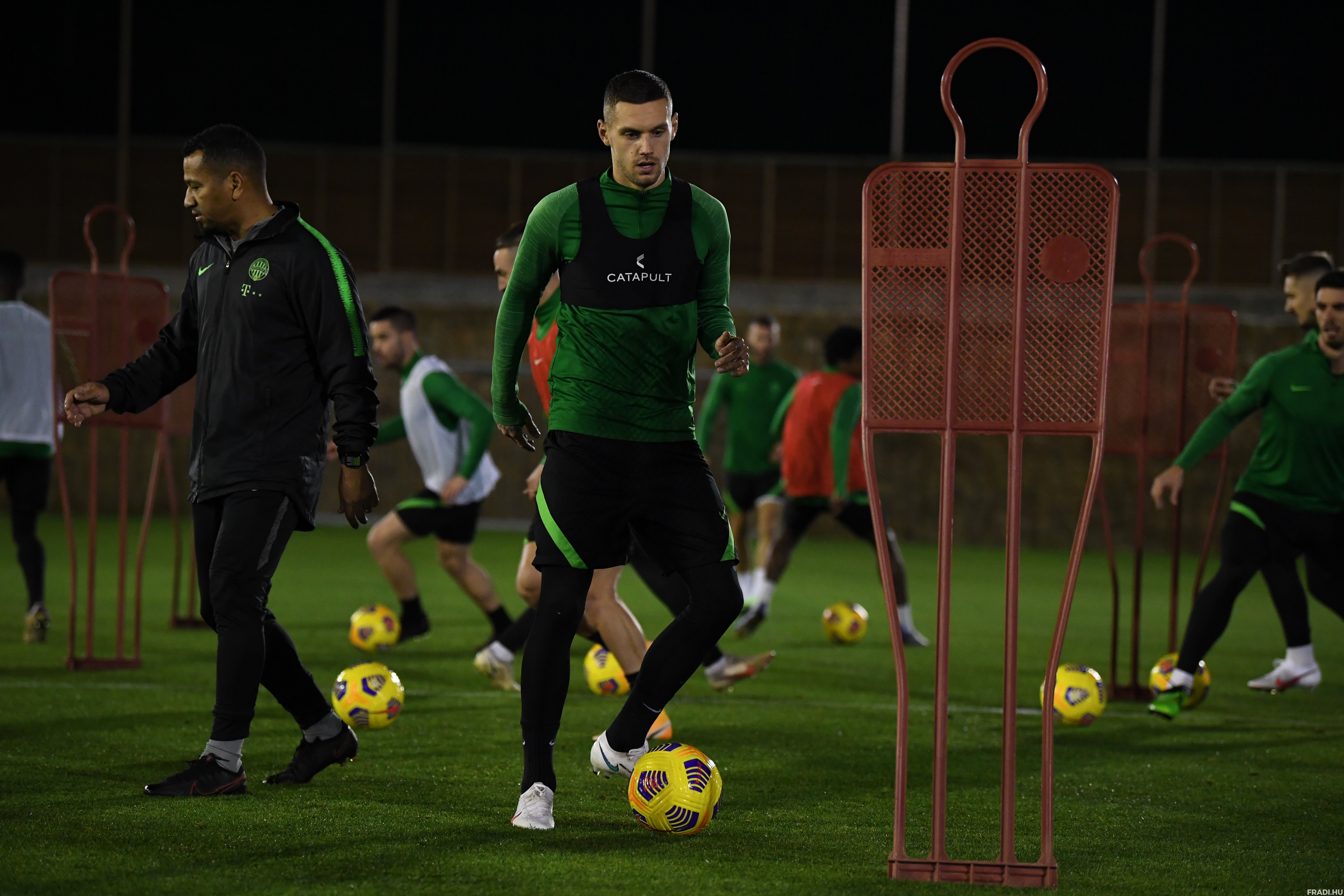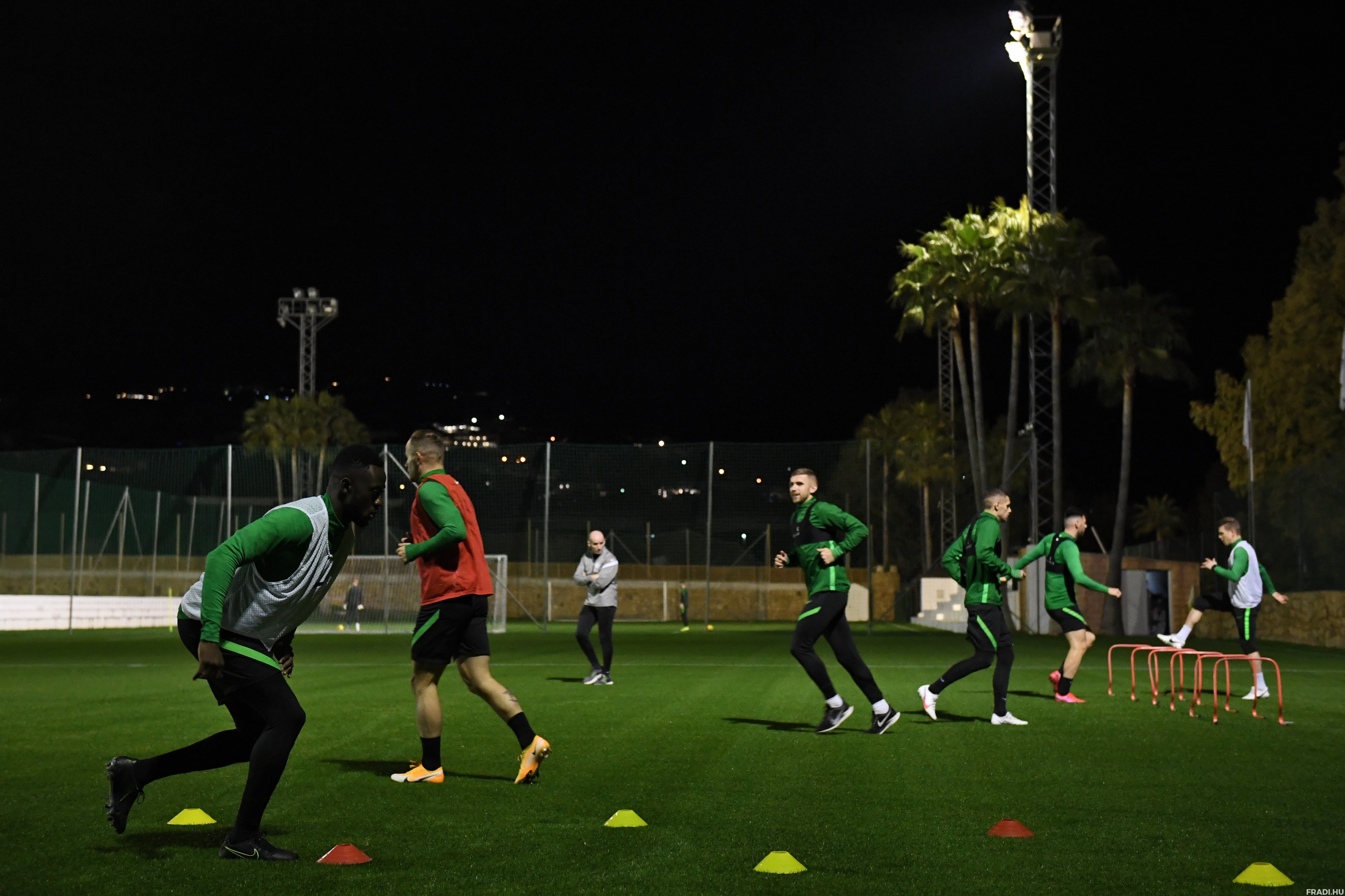 Férfi labdarúgócsapatunk a meccse helyszínén, a 10 éves Groupama Arénában edzett hétfőn.