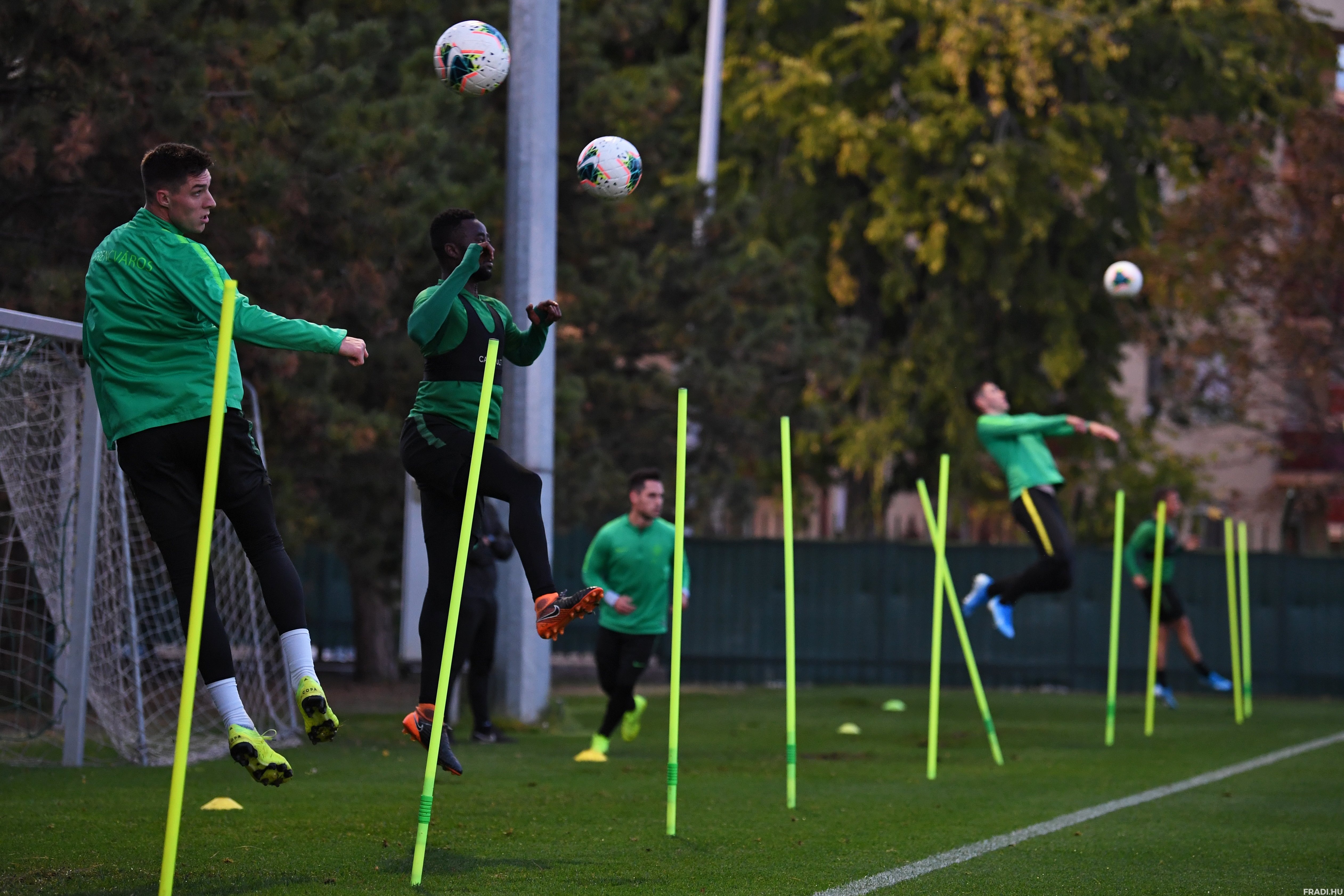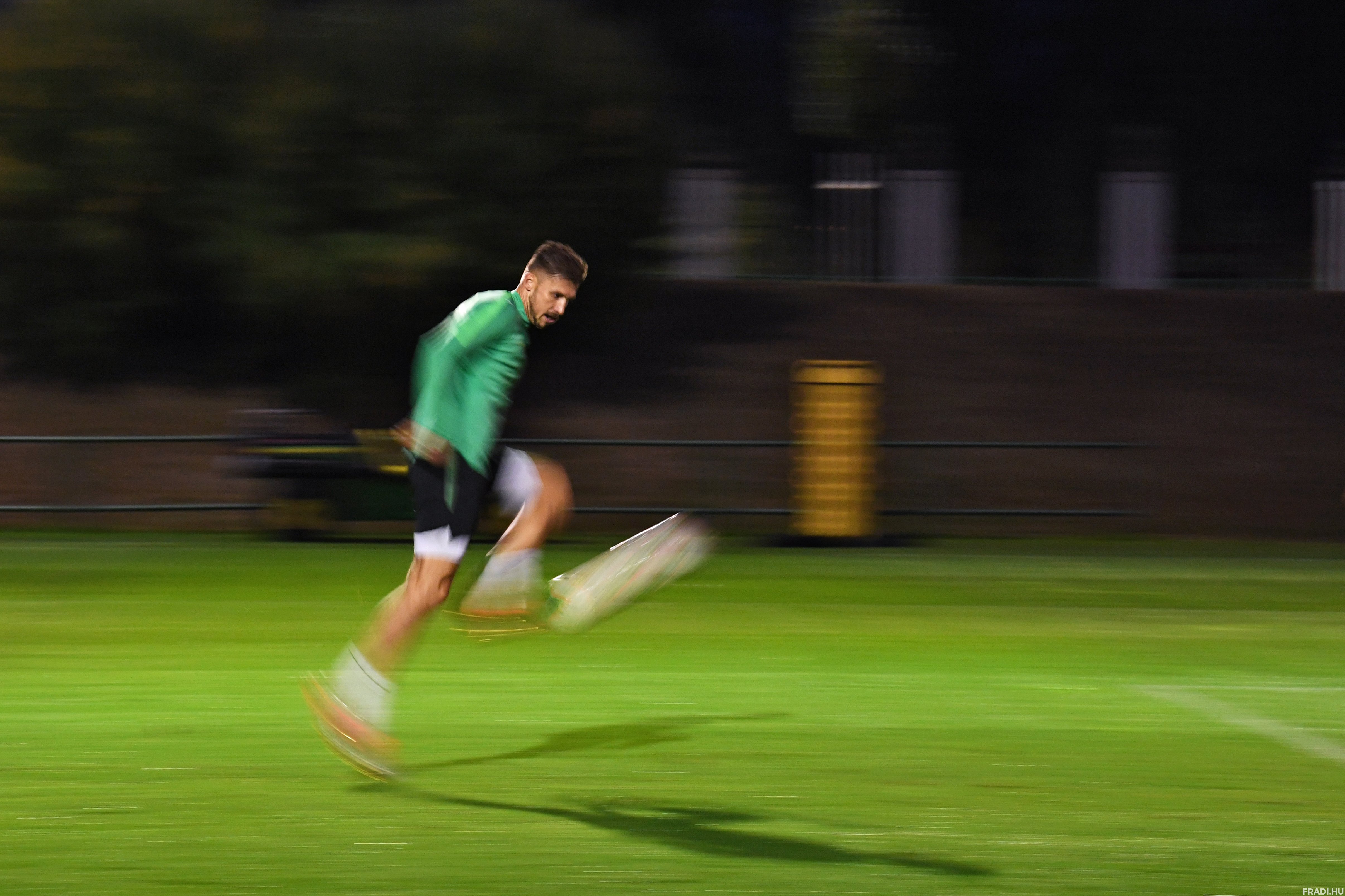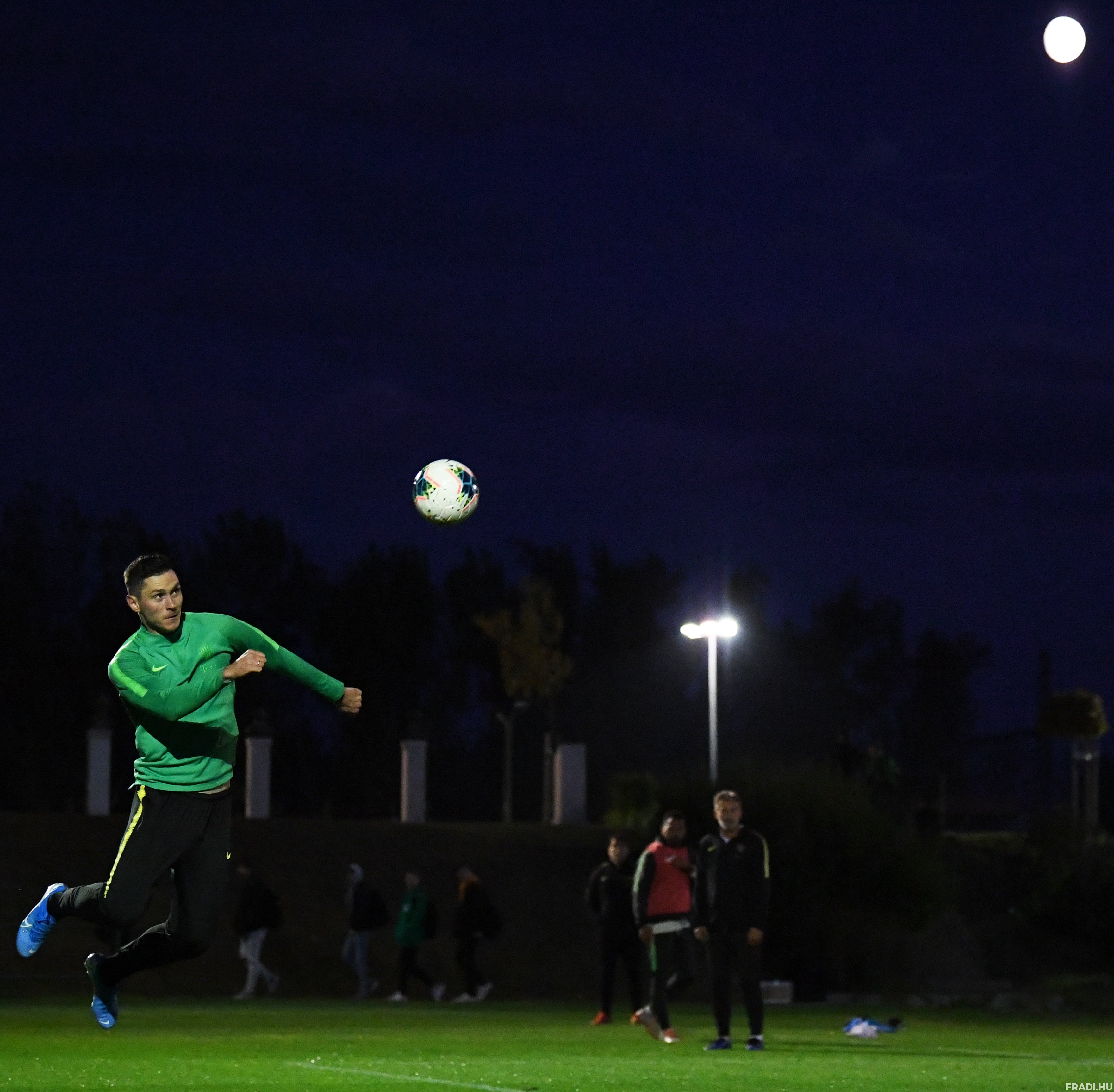 Férfi labdarúgócsapatunk a meccse helyszínén, a 10 éves Groupama Arénában edzett hétfőn.