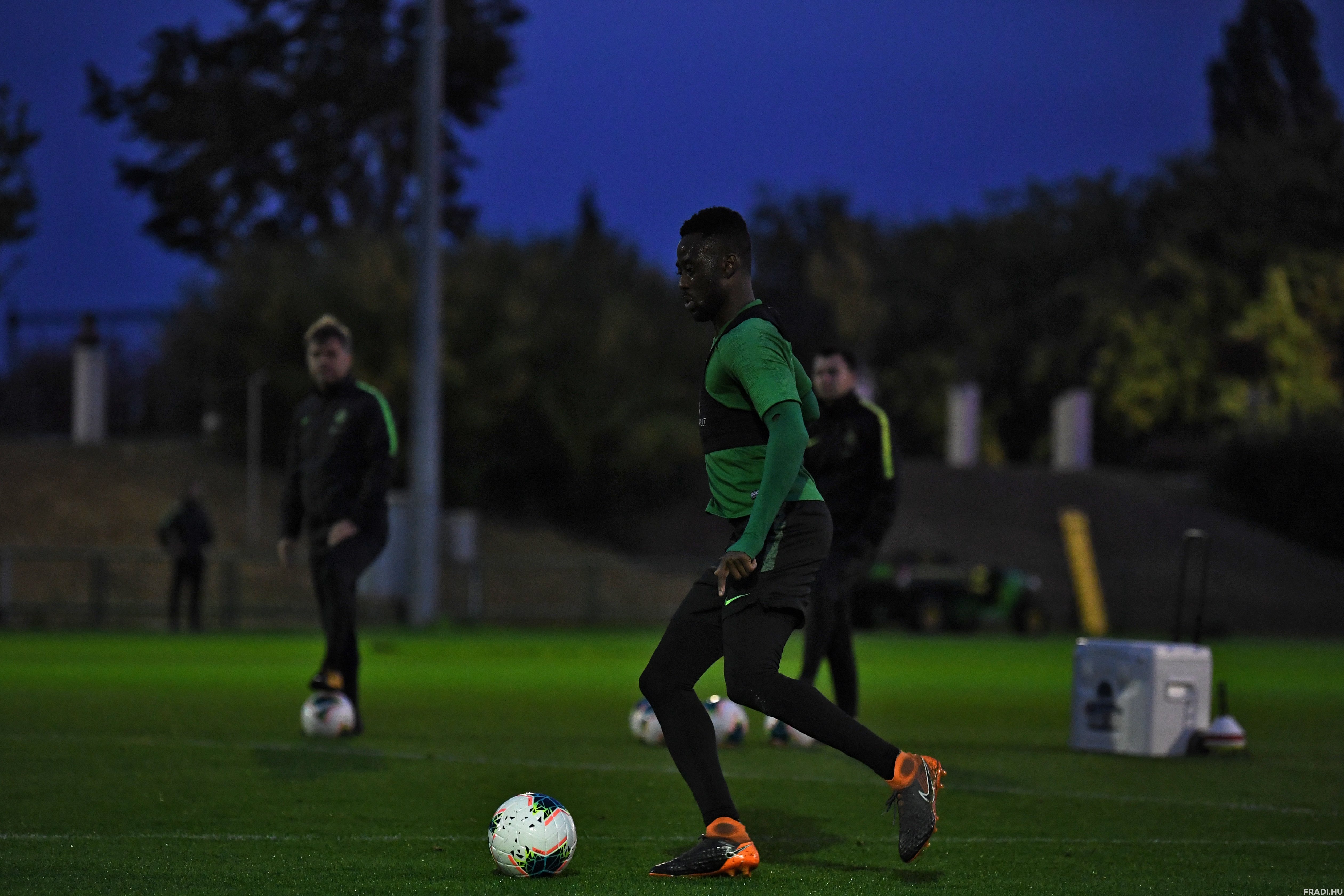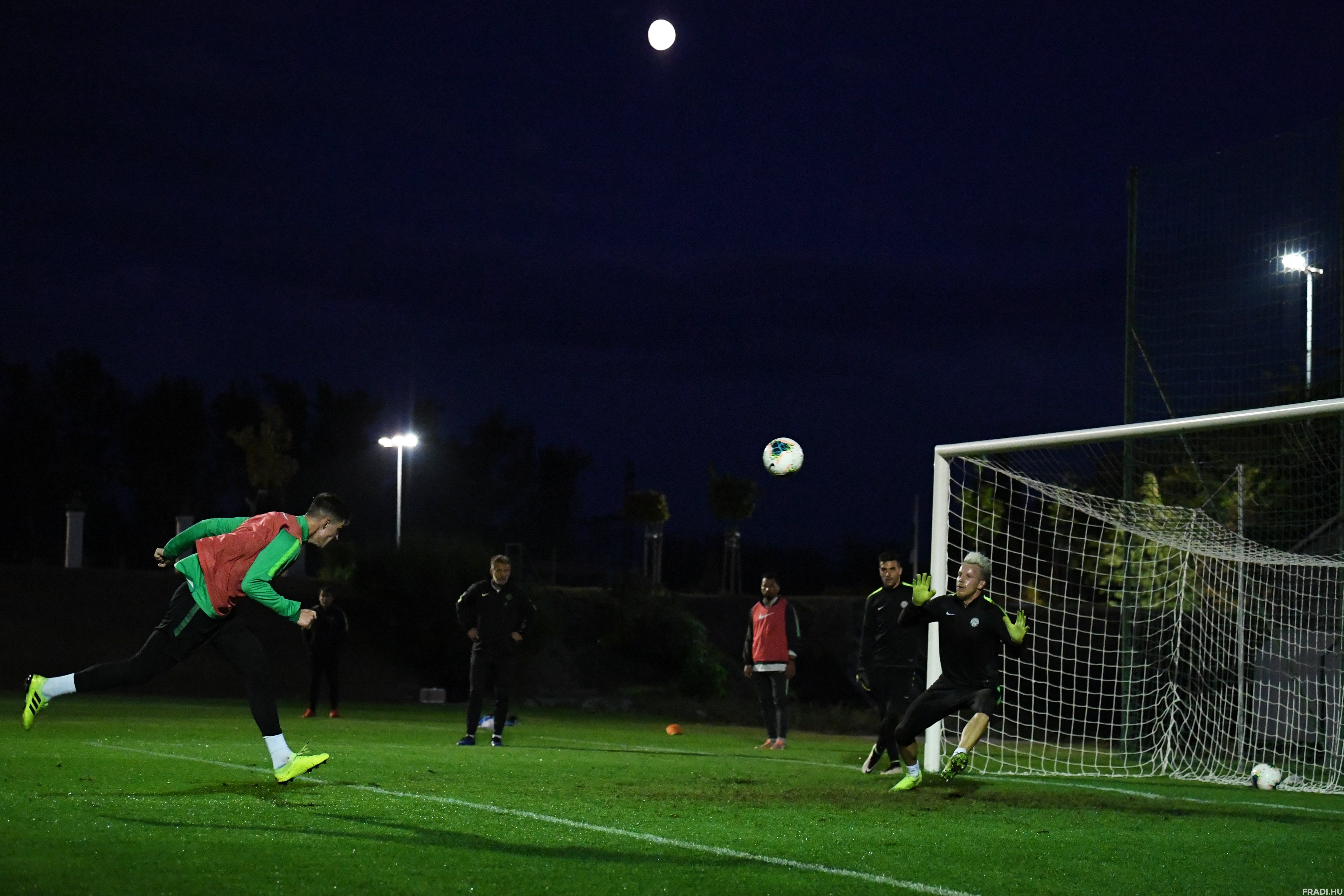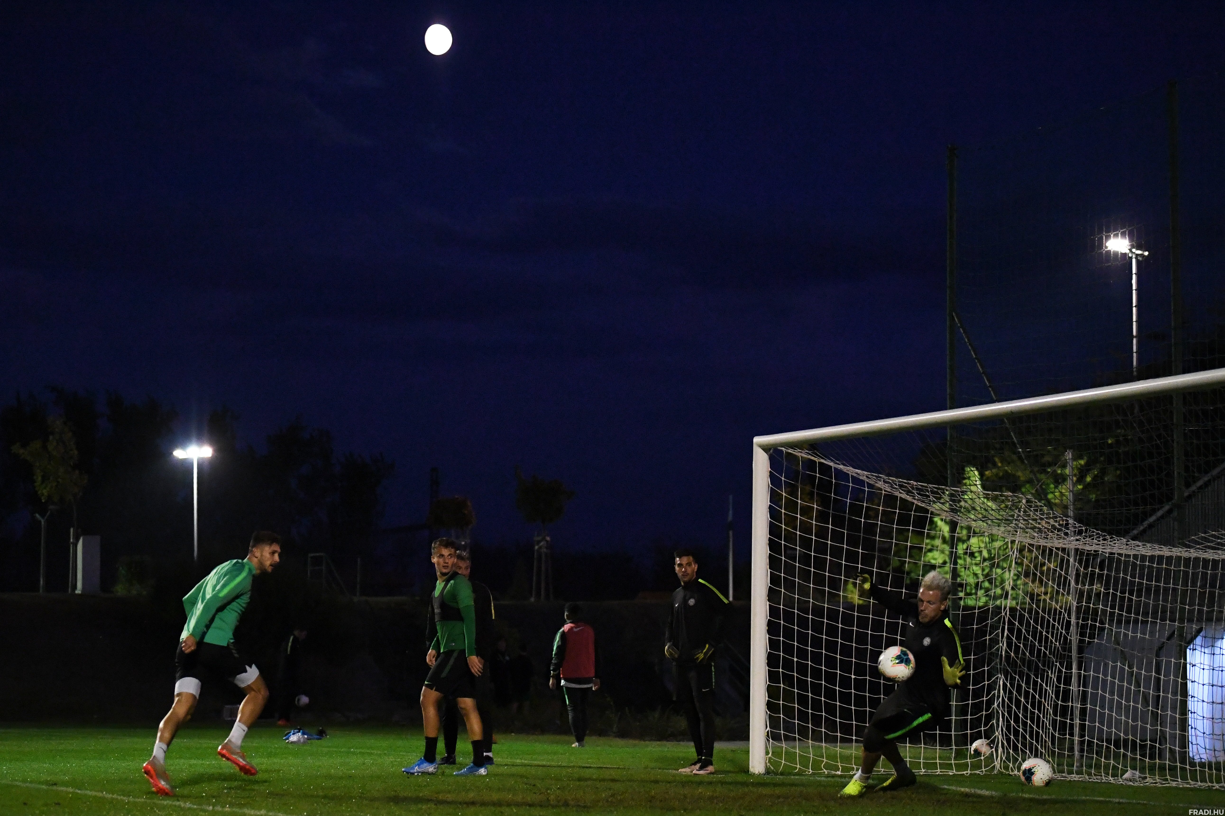 Férfi labdarúgócsapatunk a meccse helyszínén, a 10 éves Groupama Arénában edzett hétfőn.