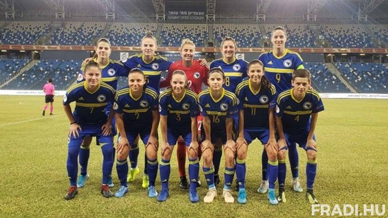 Bosznia-Hercegovina válogatottja ugyanis három fradistával, Selma Kapetanoviccsal (a képen az alsó sorban jobbról a második), Melisa Hasanbegoviccsal (a felső sorban balról a második) és Marija Aleksiccsel (a felső sorban balról az első) a soraiban 3-1-re nyert Izraelben. A bosnyákok utolsó gólja igazi fradista akcióból született, ugyanis Kapetanovic passzát Aleksic vágta a hazaiak kapujába. Bosznia-Hercegovina a megszerzett három ponttal jelenleg a harmadik helyen áll Olaszország és Dánia mögött a B-csoportban.