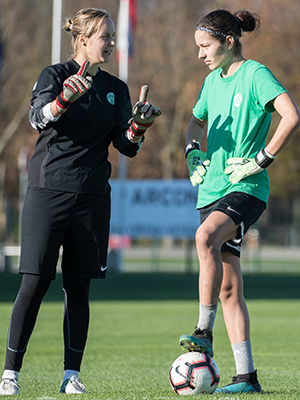„Nagy ugrás van az utánpótlás korosztály és a felnőtt mezőny között, de azon dolgozom, hogy idővel ez ne jelentsen problémát. Nagyon örültem, hogy ott lehettem a Bajnokok Ligája-selejtezőben szereplő keretben, ráadásul Chandra Bednarral és Barti Lucával nagyon jó a kapcsolatom, kiválóan tudunk együtt dolgozni az edzéseken. Erősségemnek érzem a ziccerek védését és a kirúgásaimat, de azt is tudom, hogy még van bőven hova fejlődni” – zárta gondolatait fiatal kapusunk.