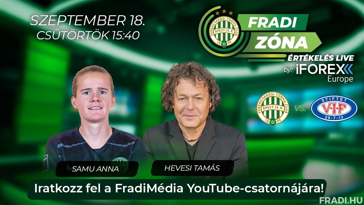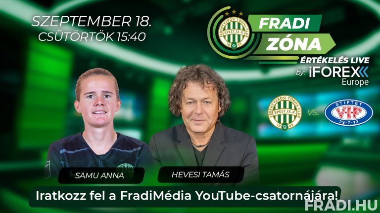 A Fradi Zóna Értékelés Live by iFOREX Europe adását a FradiMédia hivatalos YouTube-csatornáján kísérhetik figyelemmel.