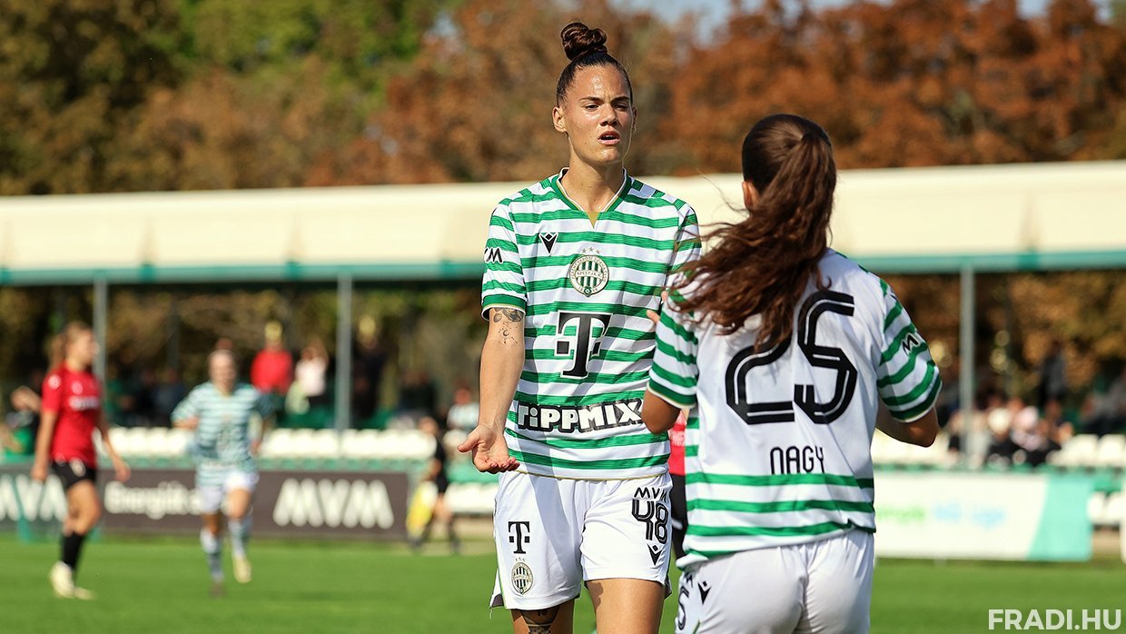 Bajnoki címvédő női labdarúgócsapatunk a PMFC-t fogadta a Simple Női Liga hatodik fordulójában a Kocsis Sándor Sportközpontban. Albert Flórián vezetőedző: a Kosztics – Zágonyi, Ott, Frajtovics – Kovács E., Czellér, Könczeyné Fenyvesi, Hanász, Garcia, Nagy Viktória – Nagy Vanessza csapattal kezdett.