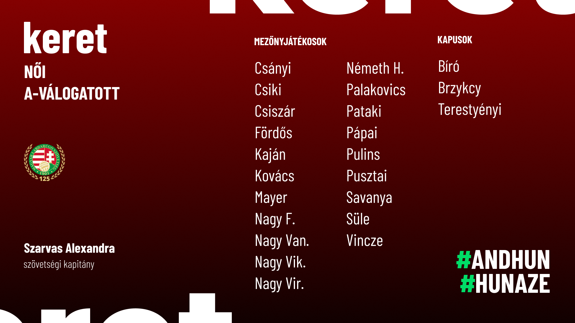 Az előző két mérkőzéshez képest a mostani keretben Csányi és a két Nagy mellett ott van Zágonyi Barbara és a sérüléséből 116 nap után visszatérő csapatkapitányunk, Könczeyné Fenyvesi Evelin is. Többek közt az ő behívásáról is nyilatkozott a szövetségi kapitány, Szarvas Alexandra az mlsz.hu-n.