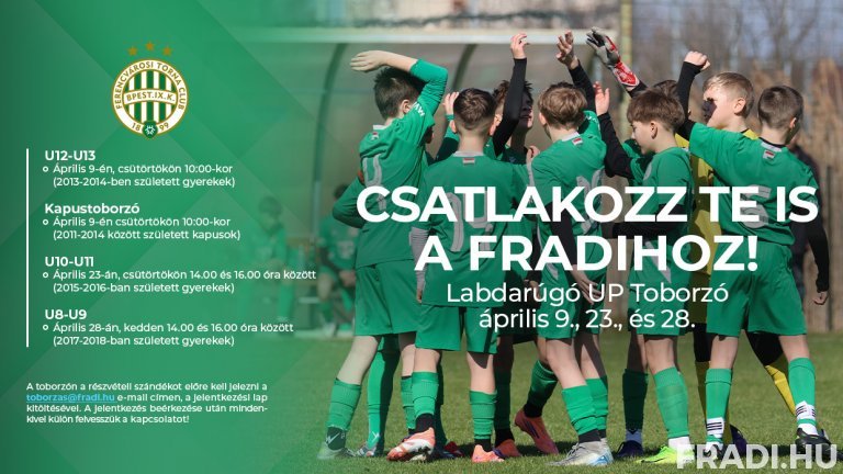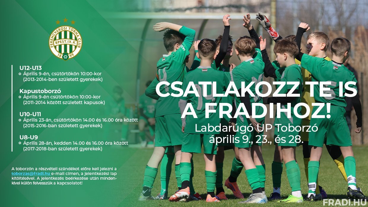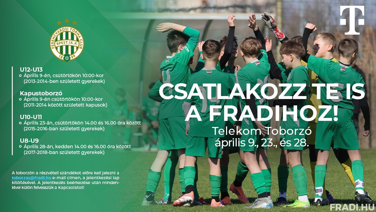 Az eseményre az egész országból várjuk a jelentkezőket! Fontos információ, hogy a toborzón a részvételi szándékot előre kell jelezni a toborzas@fradi.hu e-mail címen, a jelentkezési lap kitöltésével, melyet IDE kattintva tölthetnek le! A jelentkezés beérkezése után mindenkivel külön felvesszük a kapcsolatot!