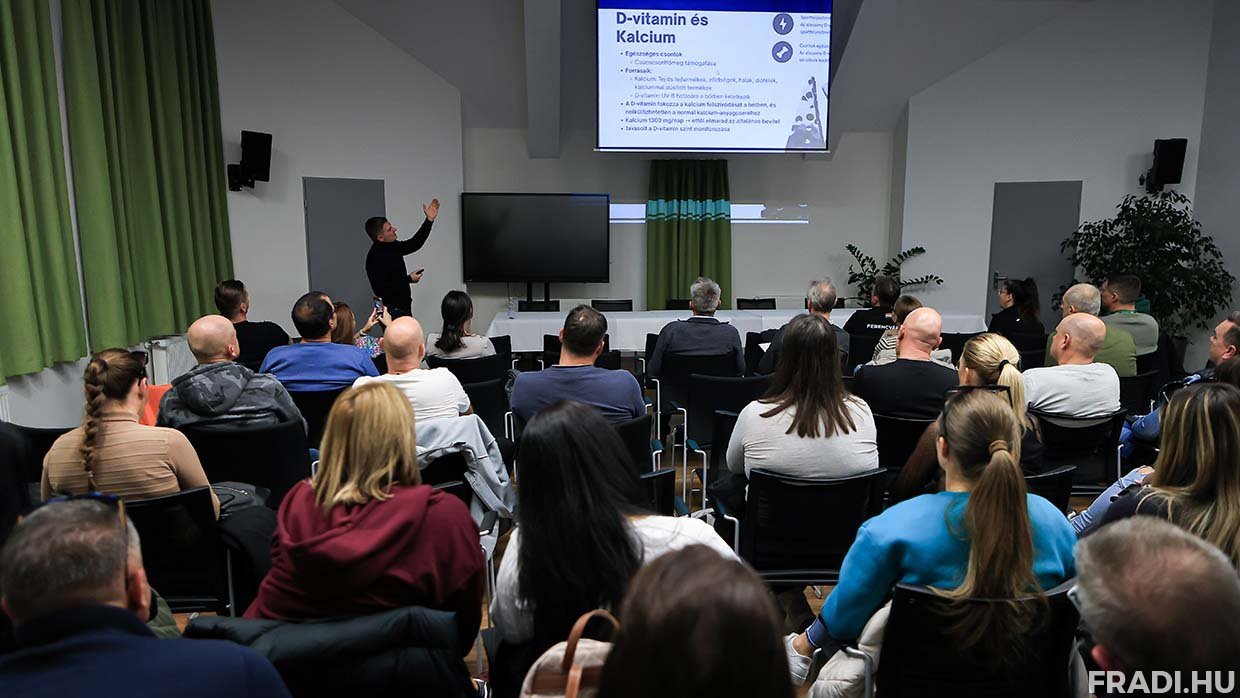 A hallgatóság soraiban utánpótláskorú labdarúgóink szülei foglaltak helyet, akik széleskörű edukációt kaptak az erőnléti munkát és a helyes sportolói táplálkozást illetően.