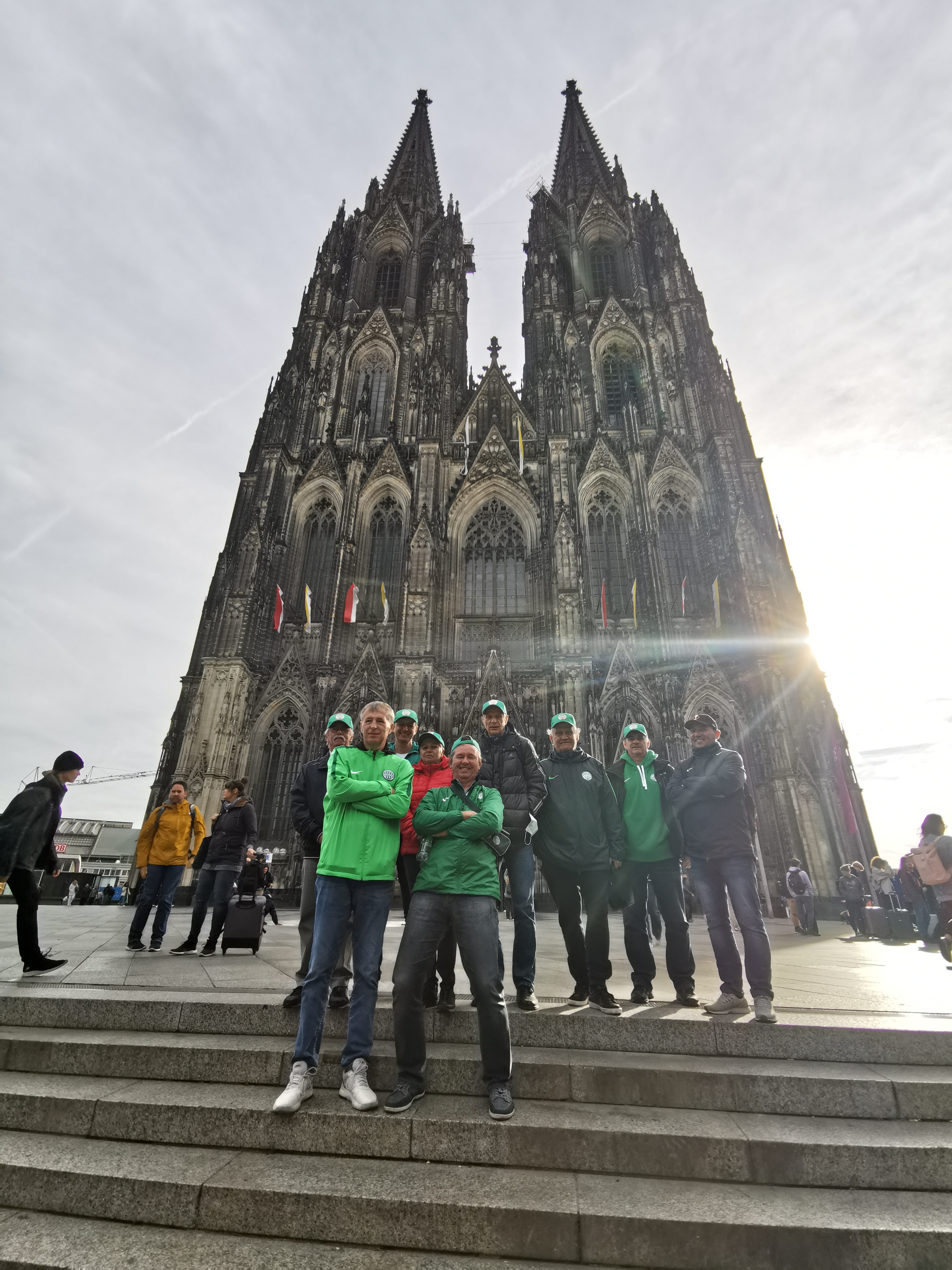 A hazaindulás napjának délelőttjén Kölnbe utazott a csapat várost nézni, a Kölni Dóm, a két nevezetes piactér, az óvárosi épületek hangulatos kisutcái és a Rajna-part érintésével. A nyugodalmas délelőttöt kalandos délután követte, a reptéren ugyanis óriási káosz és 5-6 órás sorok voltak a biztonsági ellenőrzőponthoz, amelynek vége messze a reptéri terminálon kívül, a parkoló túlsó végében kígyózott. Szerencsére az előző évezred végére jellemző fradista találékonyság nem kopott még ki, mindössze másfél óra alatt sikerült abszolválni az utat a beszállási ponthoz, néhányaknak ugyan futva és a repülőgéplépcsőket tologató reptéri munkást elhajtva, de meglett a gép, minden szempontból eredményesen alakult a túra.