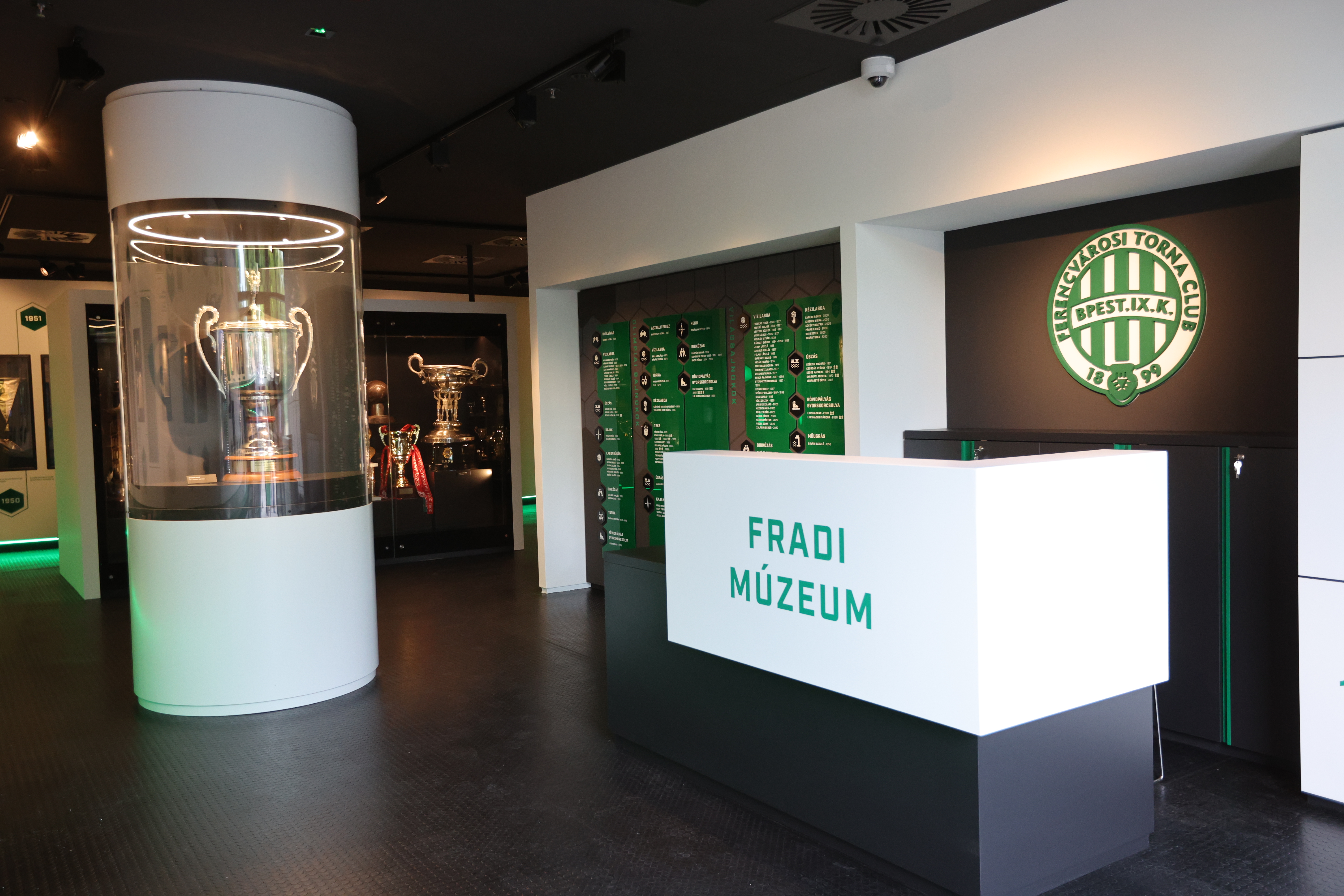 A múzeum központi terében a klubtörténet kiemelkedő trófeái sorakoznak. Itt látható Albert Flórián Aranylabdája, mint az egyik legfontosabb Fradi-ereklye. A „kincstár” vitrinegyüttese a Ferencváros labdarúgó szakosztályának rendkívül gazdag gyűjteményét mutatja be. A relikviák, serlegek és sporttörténeti tárgyak már mennyiségüknél fogva is egyértelmű üzenetet közvetítenek a látogatók számára: a Ferencvárosi Torna Club a legsikeresebb Magyarországon.