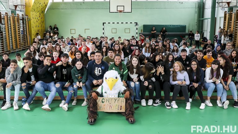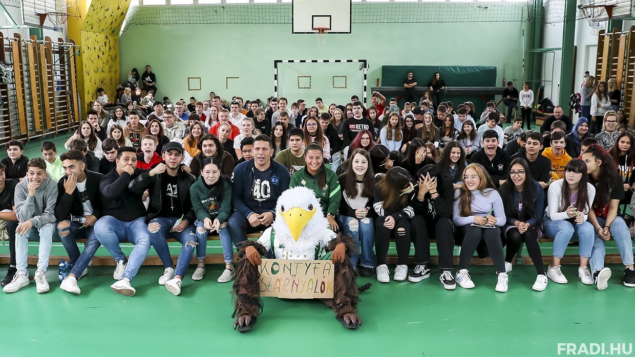 Sportolóink mellett a Fradi Sasnak is nagyon örültek a fiatalok, klubunk kabalafigurája amellett, hogy szurkolt a diákoknak a suli körüli futáson, amelyben Kótai és Fenyvesi is részt vett, a 10-12 évesek számára kiírt SuLigában a fociba is beszállt.