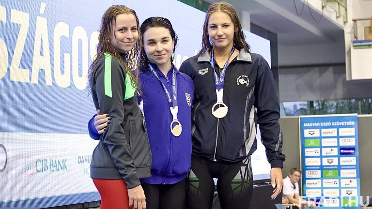 Megszületett tehát az első Fradi-érem, de jöttek a hölgyek is ugyanezen a távon Fábián Bettinával (képünk balra), aki nagy csatát vívott Késely Ajnával, végül a célban hét századdal utóbbi ért be előbb, de így is szépen csillogott Fábián Bettina ezüstje.