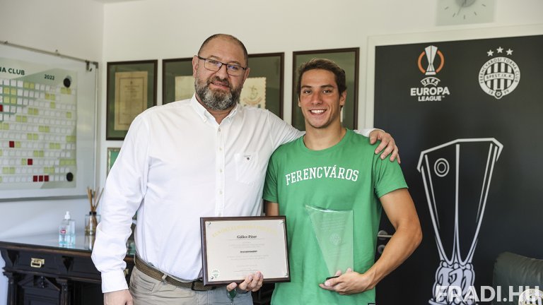 Az FTC úszója, Gálicz Péter világraszóló eredményt ért el a budapesti vizes világbajnokságon, amikor a nyíltvízi úszók 25 kilométeres távján bronzérmet nyert. A Fradi 22 éves sportolója a verseny után ITT mesélt a FradiMédiának az élményeiről, most pedig sikeréért elnöki elismerő oklevelet vehetett át klubunk ügyvezető alelnökétől, Nyíri Zoltántól.