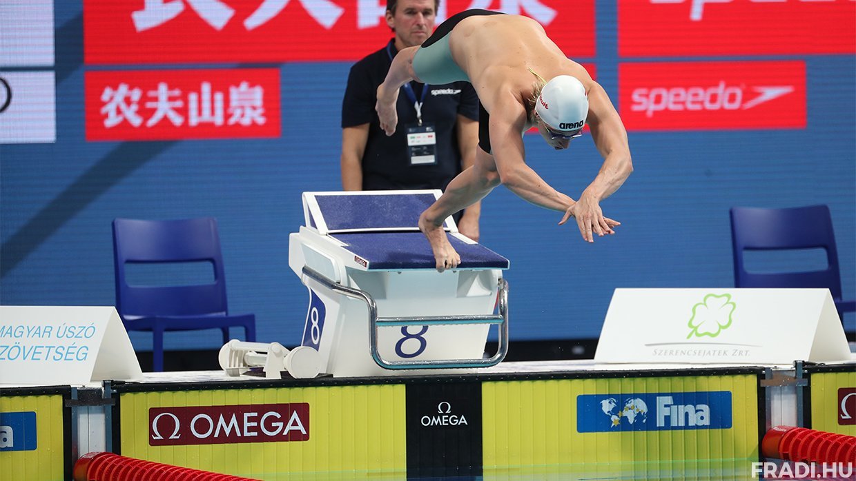Háromszoros Európa-bajnok klasszisunk szombaton is jól teljesített. 200 méter pillangón és vegyesen is bekerült a fináléba, előbbi döntőjébe a harmadik helyen, míg a második a szintén ferencvárosi Biczó Bence lett.