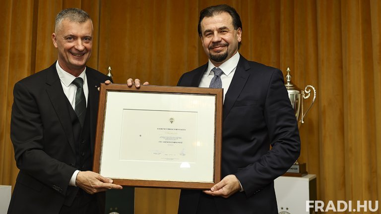A fantasztikus teljesítményt ezúttal is jutalmazta klubunk. Az első BL-címüket jegyző vízilabdázóink Aranydiplomát vehettek át Kubatov Gábor elnöktől. Öt játékosunk, Jansik Szilárd, Németh Toni, Pohl Zoltán, Vogel Soma és Varga Dénes, illetve Nyéki Balázs vezetőedző, valamint Gárdonyi András kapusedző a Fradival megnyert két BL-cím után gyémántdiplomát kapott.