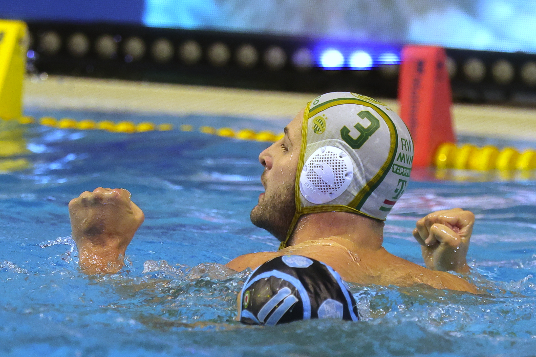 A szünet után vezetőedzőnk Szakonyi Dánielt küldte a kapuba, aki szokásos lendületét hozta a meccsbe nagyszerű védésekkel és egy lefülelt indítással. Sajnos, ez sem volt elég, mivel többször is egygólos hátrányba kerültünk, először a mérkőzésen 10-11-nél vezettek az olaszok. A Fradi azonban nem az a csapat, amely bepánikolna egy háromgólos előny elvesztése után. Nem adtuk fel, és végig riválisunk nyakában lihegtünk. A harmadik negyed végén 12-11-es olasz vezetésnél lélektanilag kulcsfontosságú pillanatok jöttek: először Vámos Márton talált be éppenhogy csak a támadóidő lejárta előtt, majd egy cserés kiállítás utáni ötméterest váltott gólra a BL-döntő hőse, Manhercz Krisztián, és ezzel negyedszer is eredményes volt (13-12).