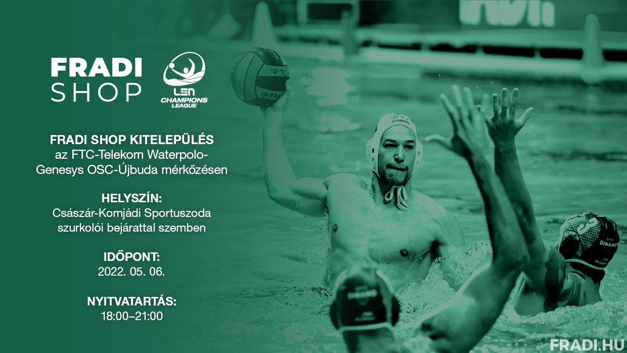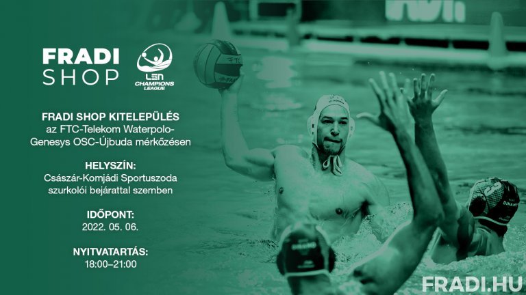A döntő első meccsének alkalmából a Fradi Shop is kitelepül a helyszínre. Az uszoda szurkolói bejáratával szemben 18.00-21.00 között széles választékkal várjuk a fradistákat, elérhető lesz többek között több vízilabda szakosztályi Diapolo termékekünk, de kiegészítőink és ajándéktárgyaink (sál, bögre, karkötő) is a kínálat részét képezik majd.