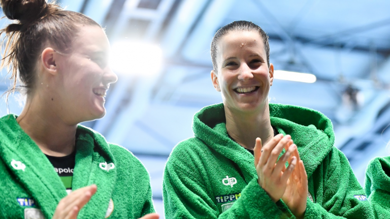 Az önfeledt öröm, a győzelem pillanatai a medence partjáról, friss kupagyőztes női vízilabdázóinkkal – VIDEÓ!